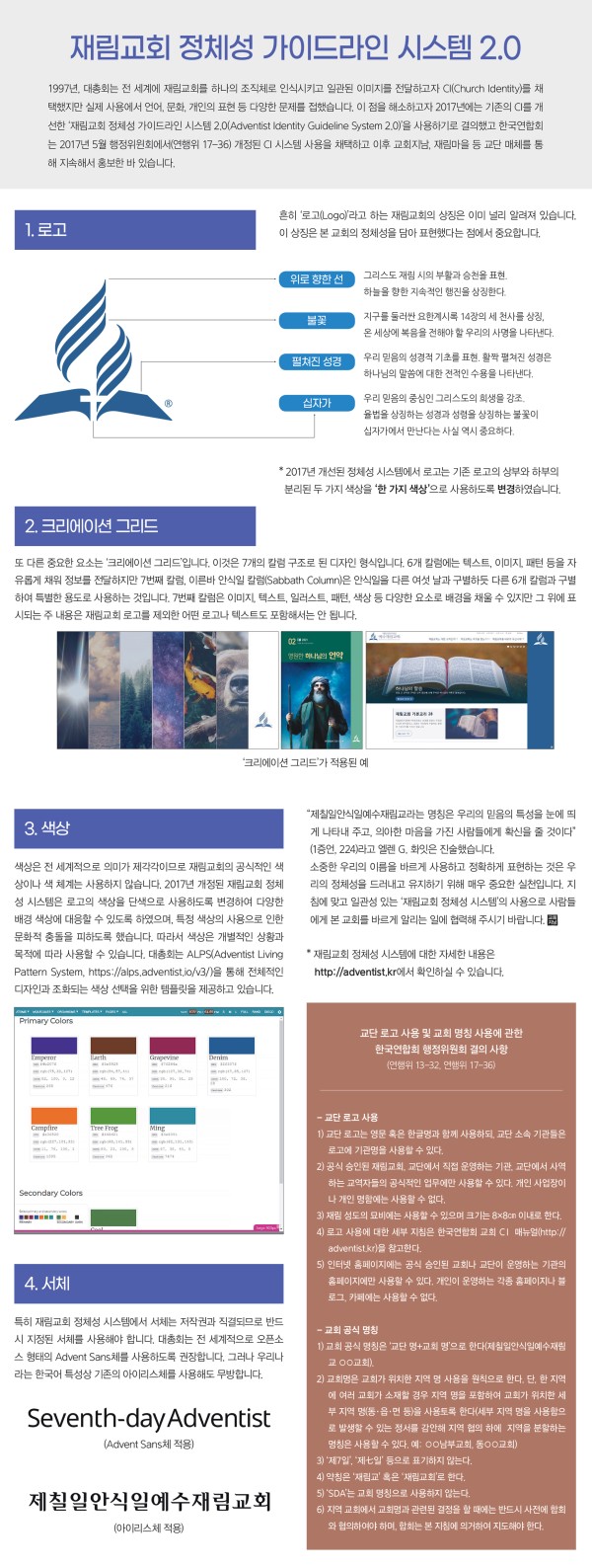 공지 재림교회(교단) 공식 로고 바르게 사용하기 페이지 정보 작성자 최고관리자쪽지보내기 메일보내기 자기소개 아이디로 검색 전체게시물쪽지보내기 메일보내기 자기소개 아이디로 검색 전체게시물 작성일2023.11.22 20:56 조회수 11,264 글씨크기 + - 본문 로고 사용에 대한 자세한 사항은여기를 클릭하시기 바랍니다.로고 파일 다운로드 추천 0 페이스북 공유 트위터 공유 이전글[B.M.W 11월 뉴스레터] 23.11.22 다음글로마린다교회 오충환목사님 은퇴 감사예배 23.11.20 댓글 0 댓글목록 등록된 댓글이 없습니다. 목록